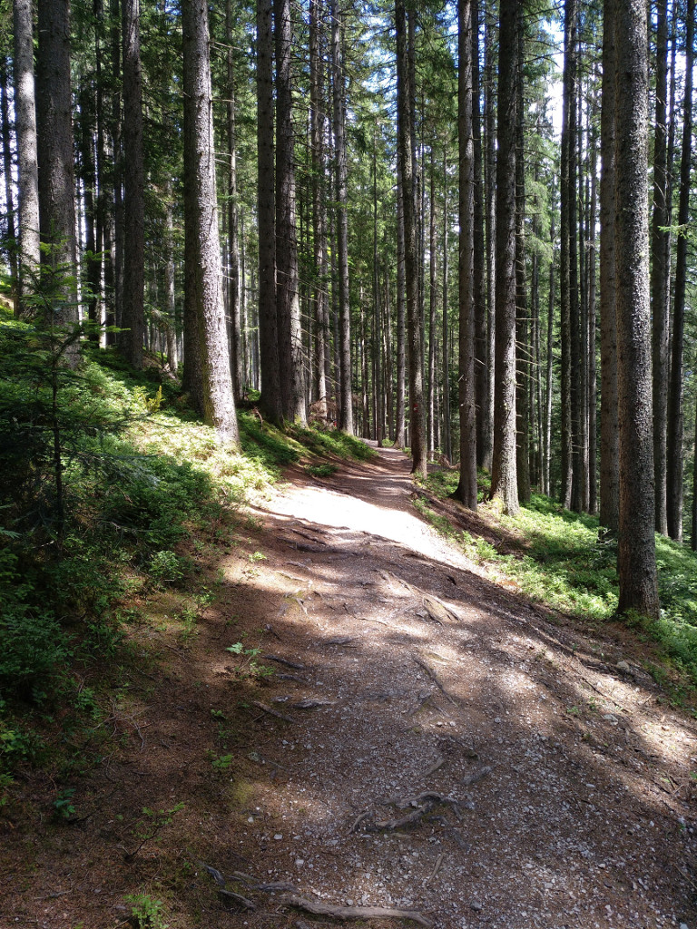 Für den Rückweg bietet sich ein ruhiger, breiter Waldweg an.