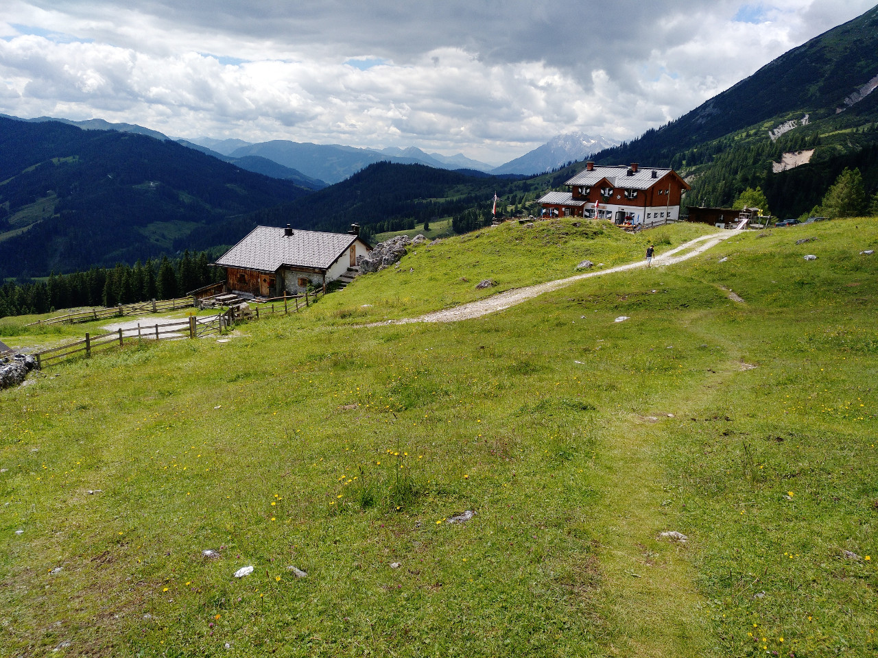 Bei der Dientalm kann man wieder einkehren, essen und trinken.