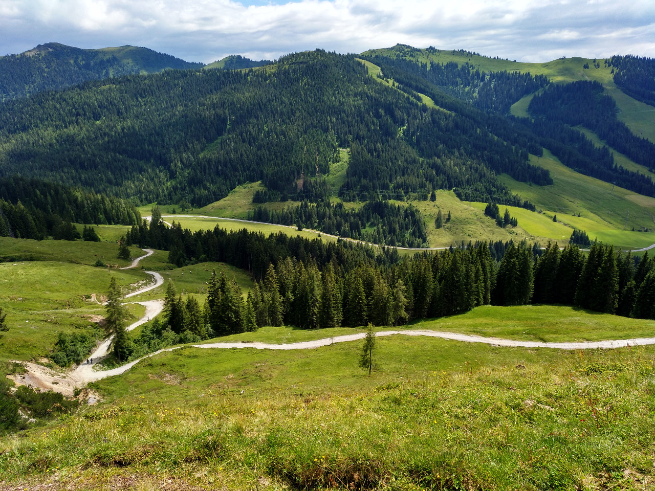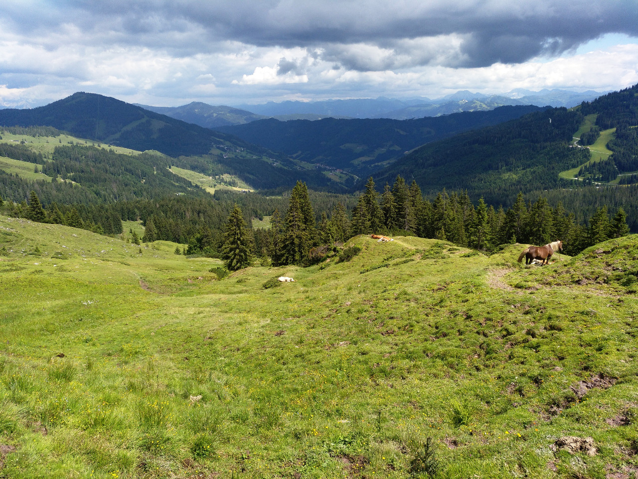 Es geht über Almen, an Kühen und Pferden vorbei, durch ein klein bisschen Geröll und über wildes Wurzelwerk durch den Wald. Außerdem gibt es zwei Gelegenheiten einzukehren.